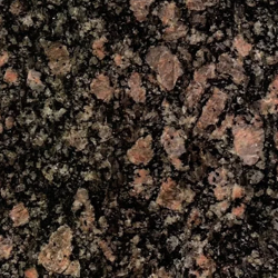Месторождение - Украина, Житомирская область, Попельнянский район. Среднезернистый гранит коричневого цвета с черными включениями.